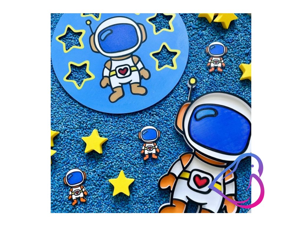 Roztomilí 2D astronauti jsou skvělým doplňkem k vysypávacímu tácku ve tvaru astronauta nebo k vkládací desce do balančního kamene. Děti si s nimi rozvíjejí jemnou motoriku, představivost a poznávají svět nad hlavami.