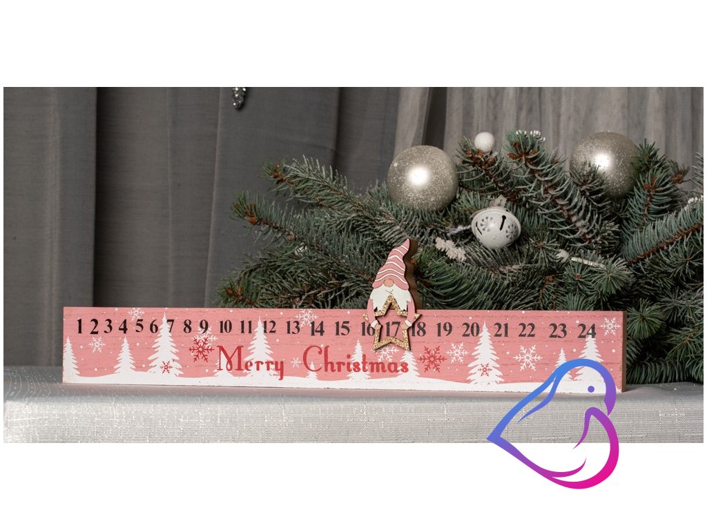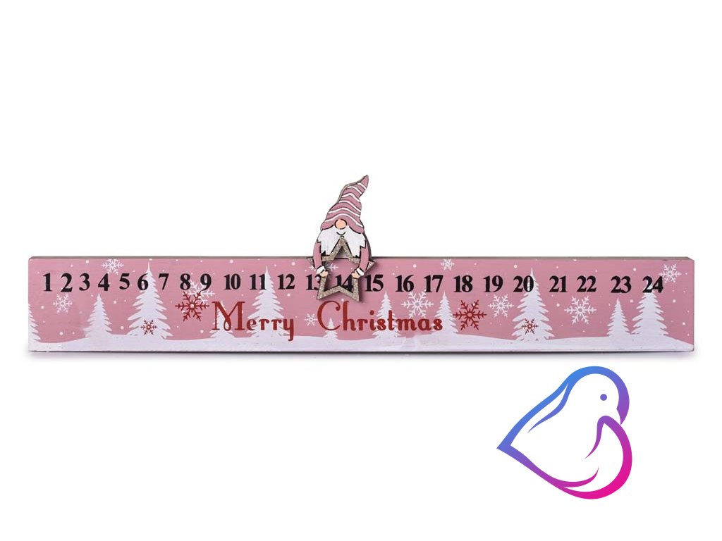 Adventní kalendář dřevo 400x105mm, přírodní, růžová, bílá
