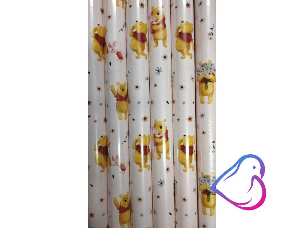Balící papír s dětským motivem Medvídka Pú s květinami.