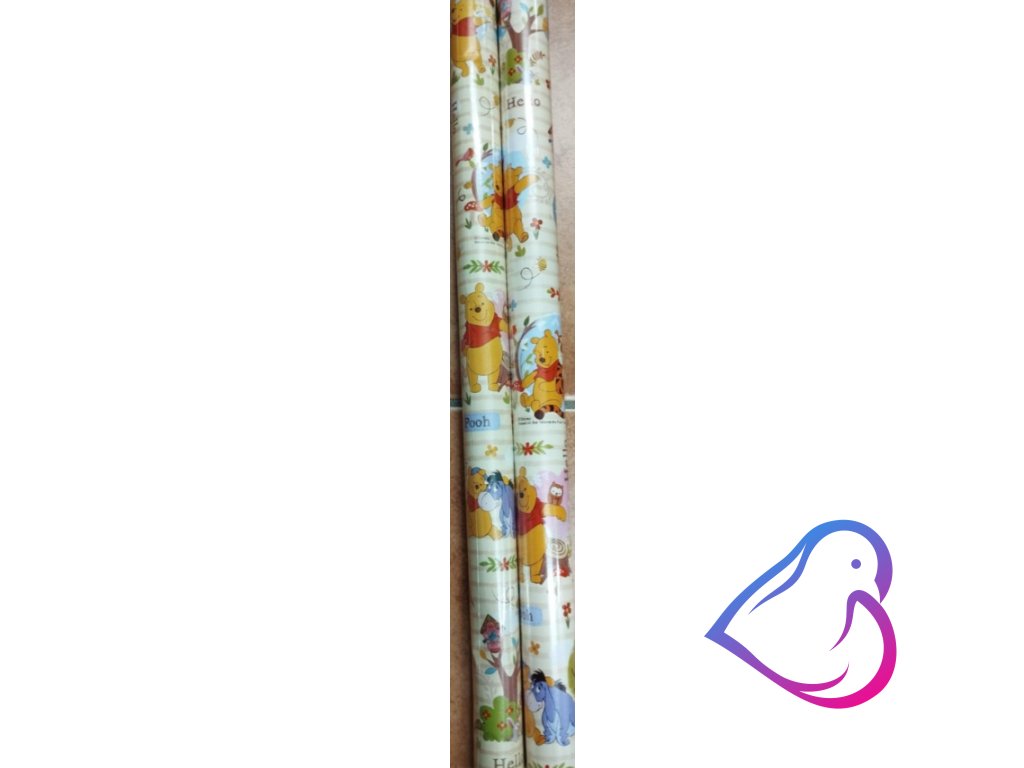 Balící papír s dětským motivem Medvídka Pú (s proužky).
