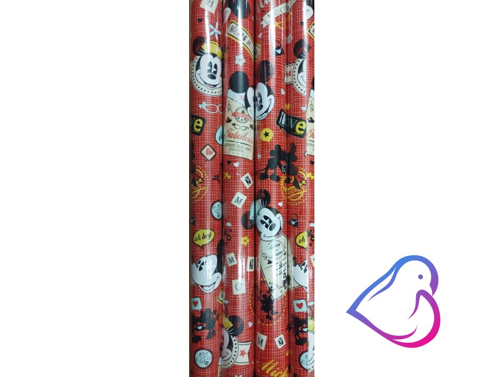 Balící papír s dětským motivem Mickeyho a Minnie.