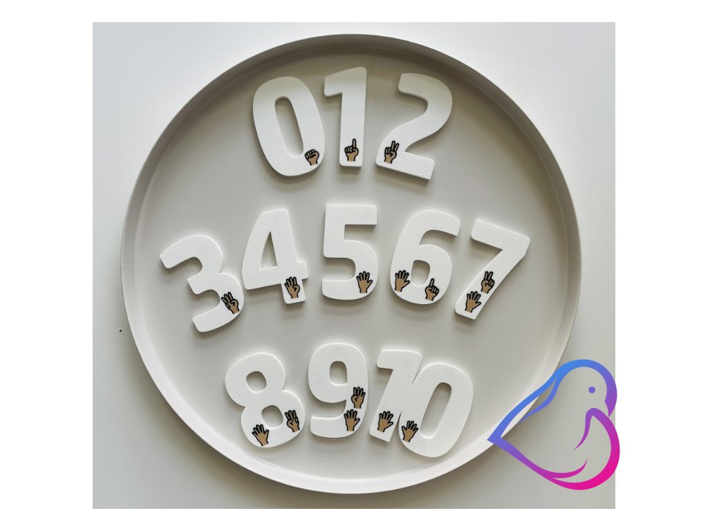 Každou číslici doprovází obrázek ruky, která ukazuje daný počet prstů – děti se tak učí nejen vizuálně, ale i prakticky. Snadno si spojí číslo s množstvím, a tím si budují pevné základy pro matematické myšlení.