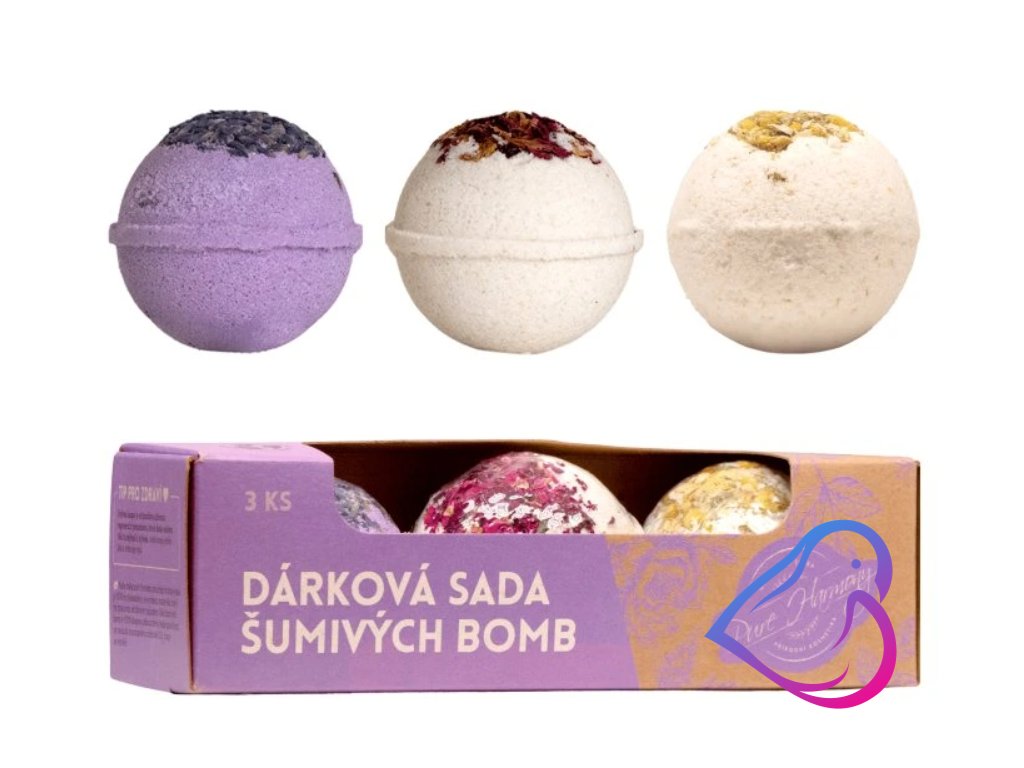 Objevte kouzlo bylinné koupele s dárkovou sadou šumivých bomb. Obsahují esenciální oleje z bio levandule, růže a heřmánkový vonný olej, které pomáhají zklidnit mysl a navodit pocit hluboké relaxace. Díky vysokému podílu olivového oleje zůstane vaše pokožka jemná, hydratovaná a vyživená.