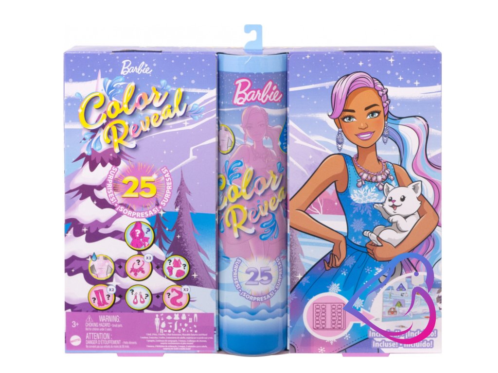 Kalendář obsahuje originální panenku a k tomu 24 dárečků v podobě doplňků a stylové módy, se kterými vám čekání na Vánoce příjemně uběhne. Adventní kalendář Barbie Color Reveal je určen pro děti od 3 let.