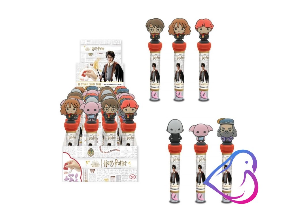 Plastová tuba s bonbóny (8g) a razítko s gumovou 2D figurkou.