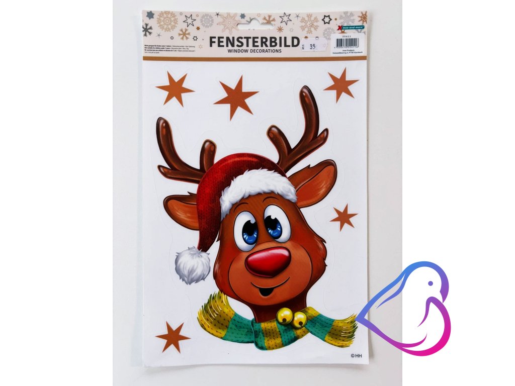 Vánoční okenní fólie s motivem roztomilého sobíka v čepici a šále.