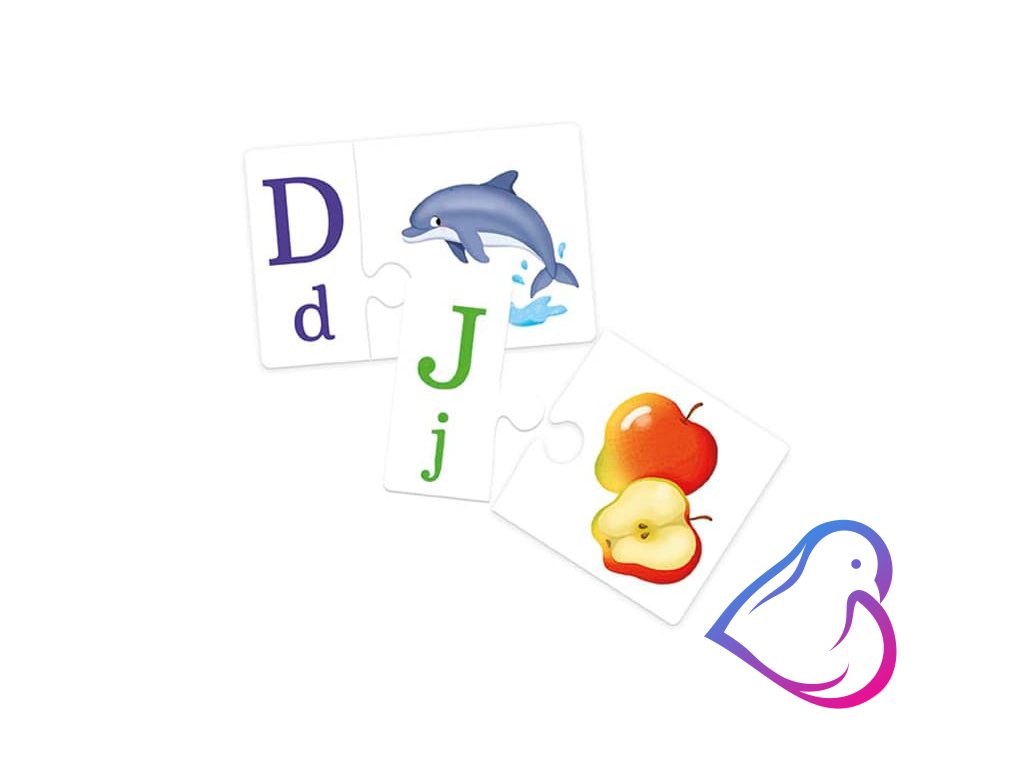 Krabička obsahuje 26 barevných puzzle kartiček s různými motivy, díky nimž se děti učí poznávat písmenka a ještě si jejich skládáním procvičují jemnou motoriku.