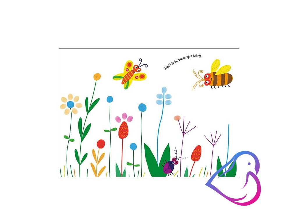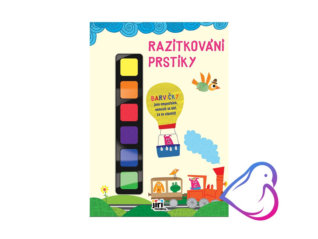 Razítkování prstíky obsahuje 32 stránek plných veselých obrázků k dorazítkování a 6 prstových barev.