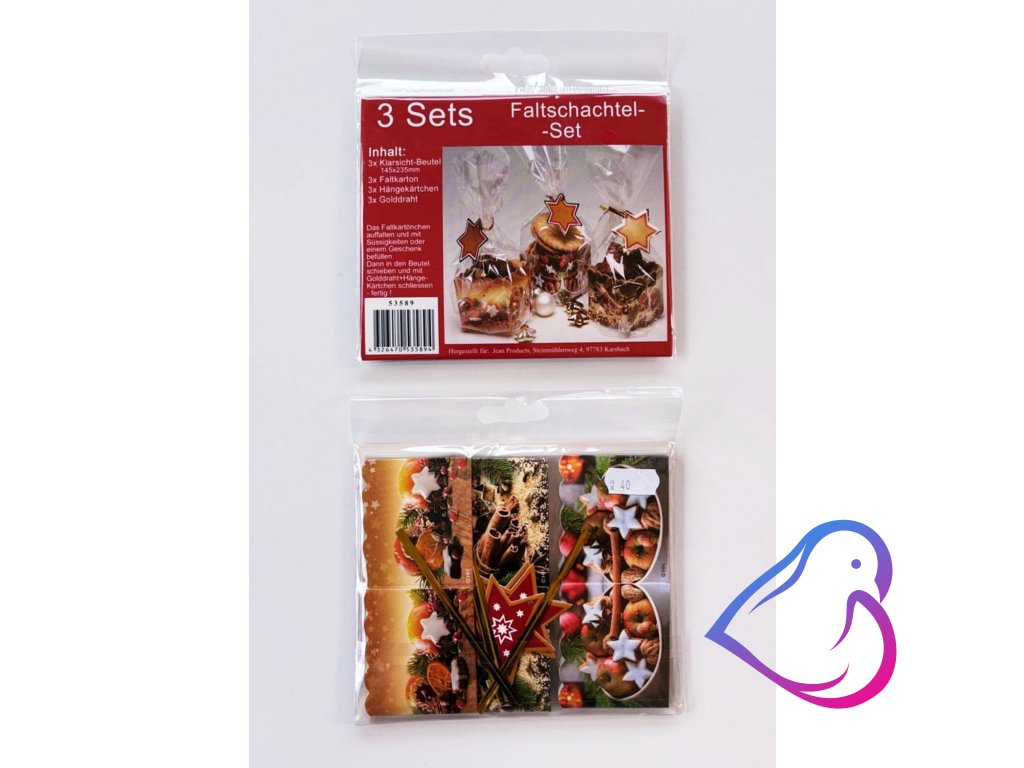 Sada 3 kusů vánočních skládacích krabiček včetně příslušenství pro dárkové balení.