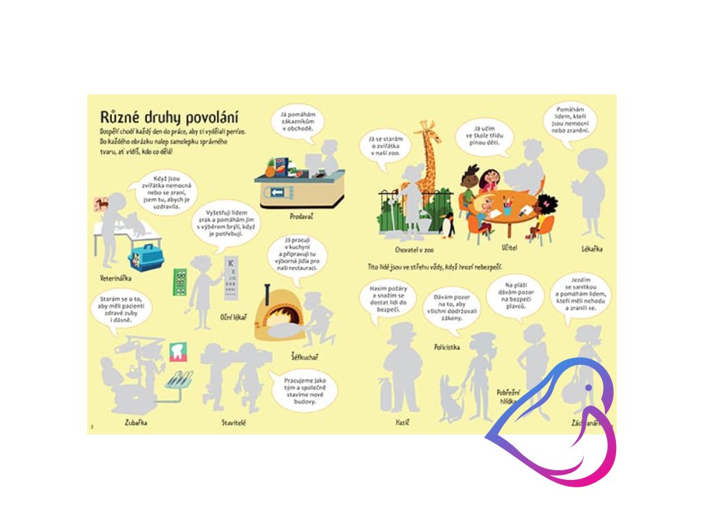 Samolepková knížka obsahuje 16 barevných stran a 8 stran samolepek k dolepení.