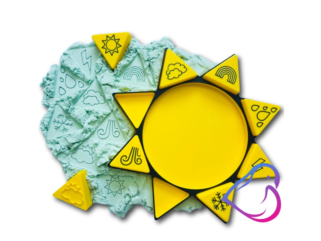 🌞 Multifunkční set – vysýpací tác, vkládačka a razítka v jednom – je stvořený pro všechny malé meteorology a objevitele, kteří chtějí poznávat svět počasí všemi smysly.