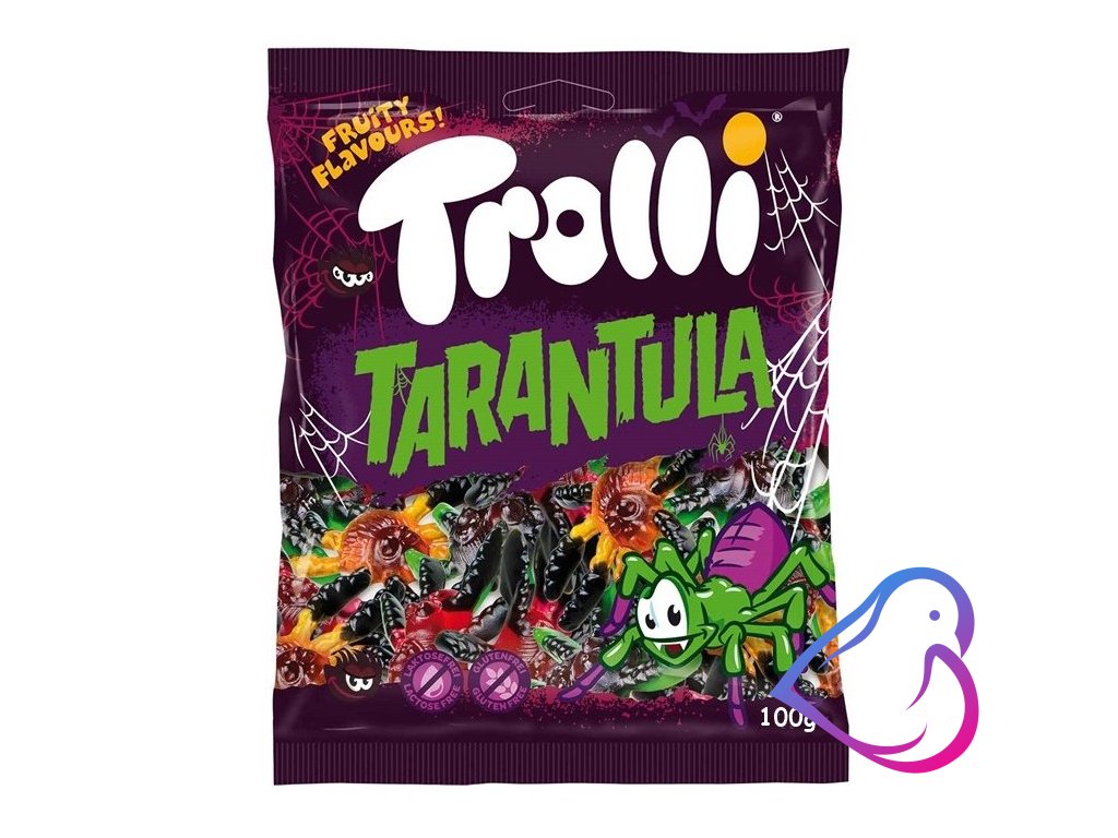Lahodné ovocné želé ve tvaru pavouků v kombinaci chutí malin, ostružin, jablek, jahod a pomerančů.