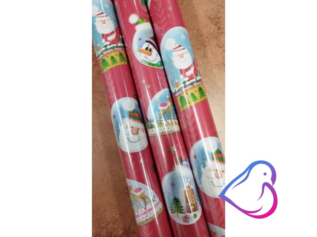 Vánoční balící papír s motivem baněk a sněžítek s dětskými motivy.