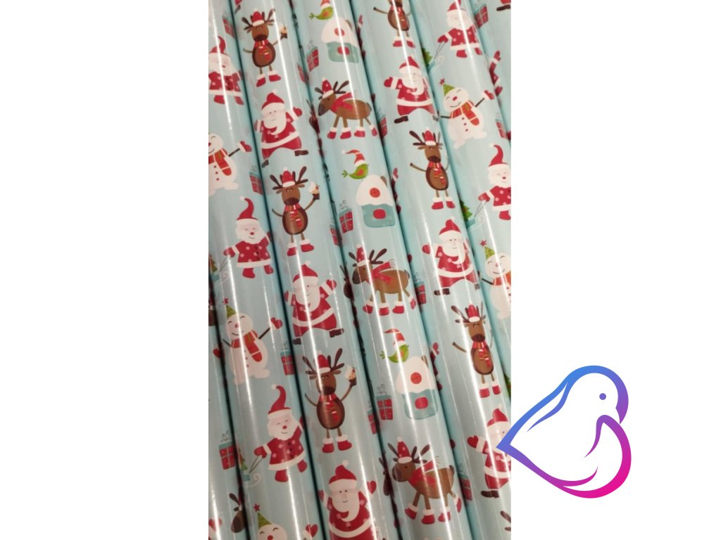 Vánoční balící papír s motivem Santy, sobů a sněhuláků.