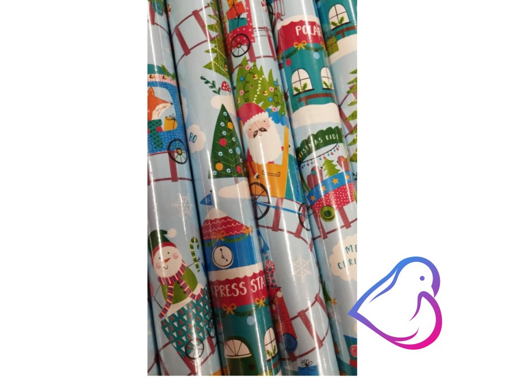 Vánoční balící papír s dětským motivem (Santa, sněhulák, zvířátka).