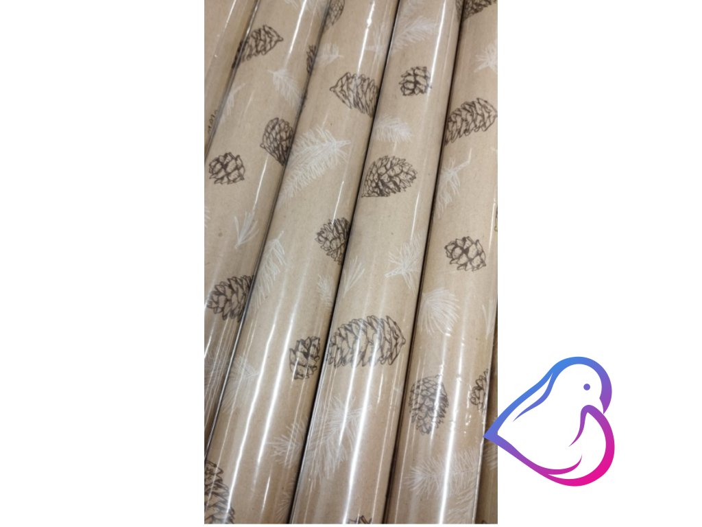 Vánoční balící přírodní papír s motivem šišek a jehličí.