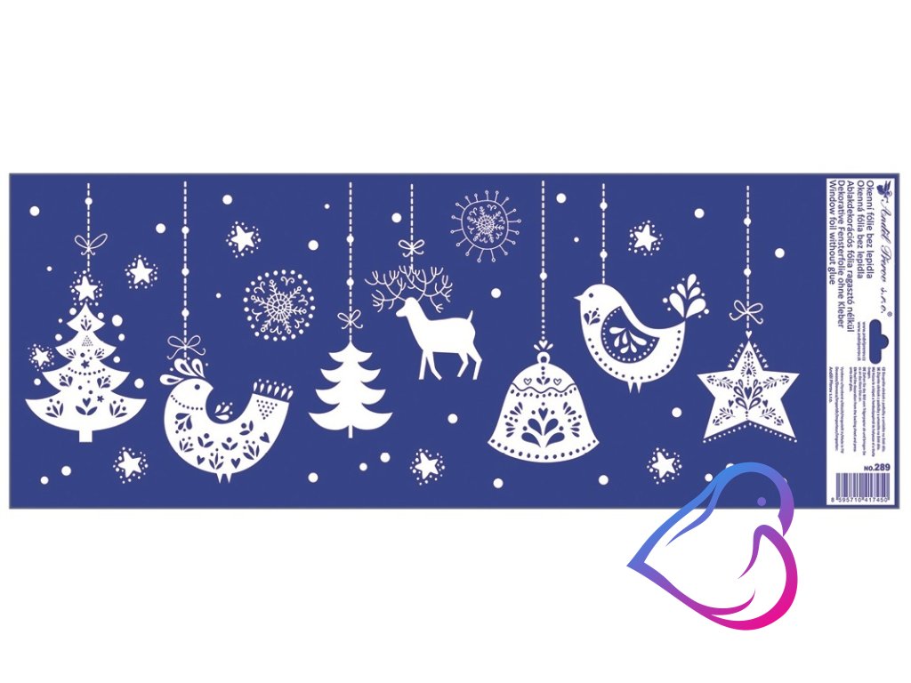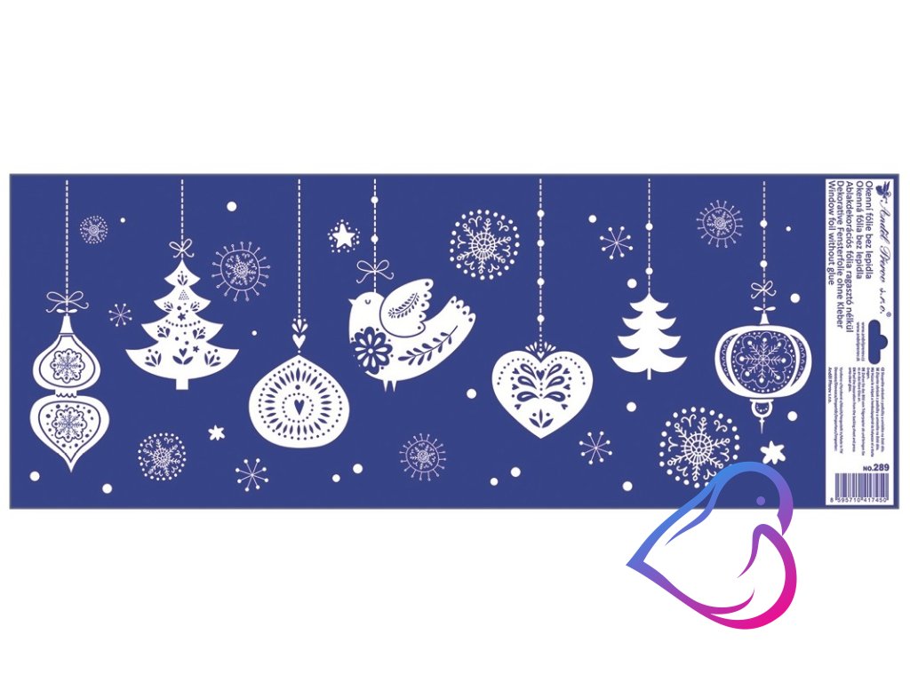 Elegantní okenní fólie s motivem visících vánočních dekorací a jemnými glitry přináší do vašeho interiéru sváteční třpyt a kouzelnou atmosféru.