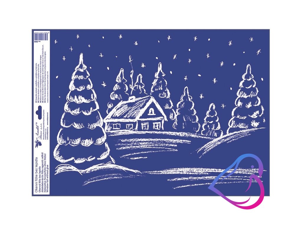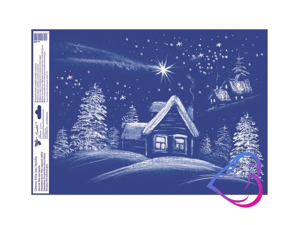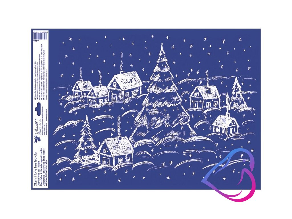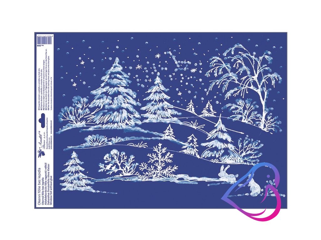 Vánoční okenní fólie s glitry - zasněžená krajina