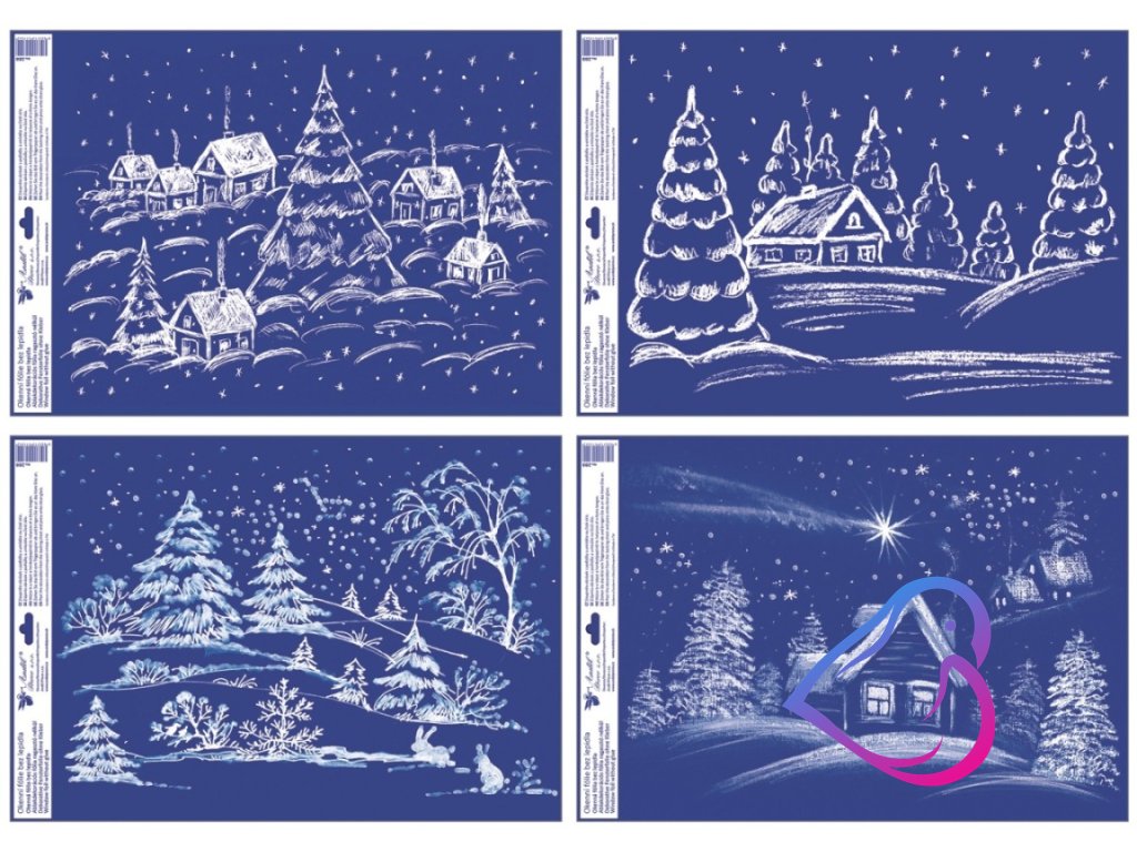 Krásná okenní fólie s motivem zasněžené zimní krajiny ozdobená jemnými glitry dodá vašim oknům působivý vánoční nádech.