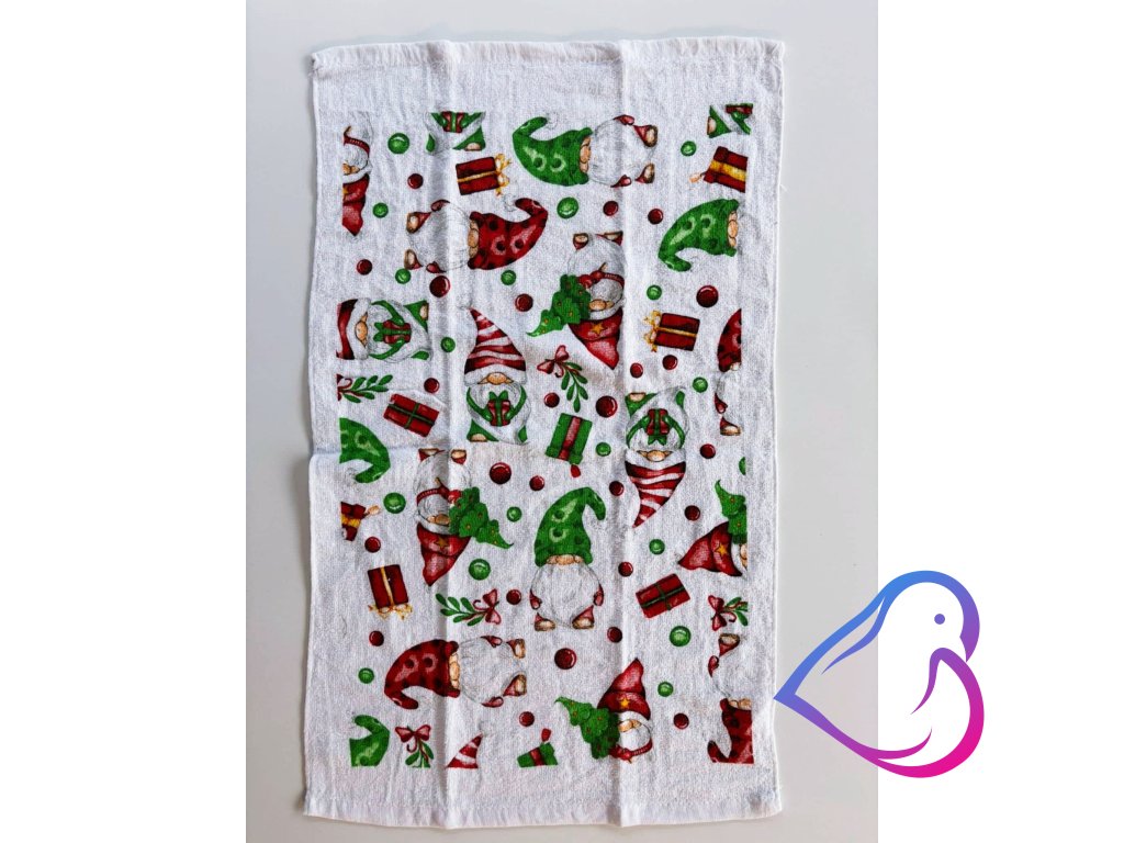 Vánoční utěrka s kouzelným motivem skřítků, která rozzáří každou kuchyni.