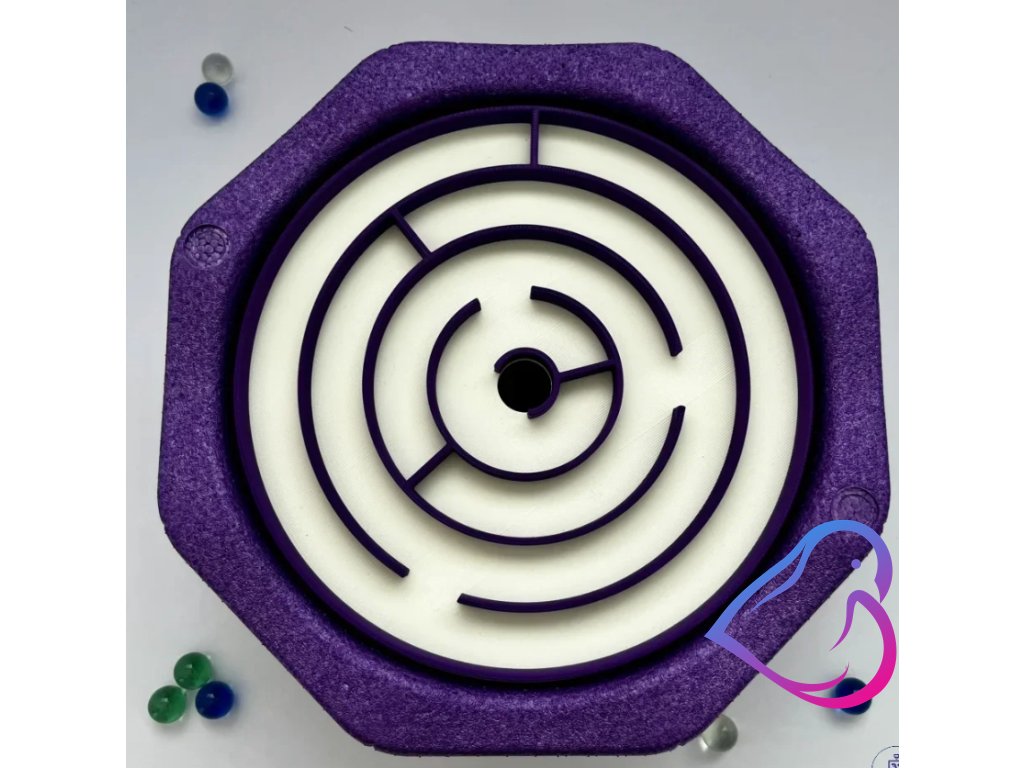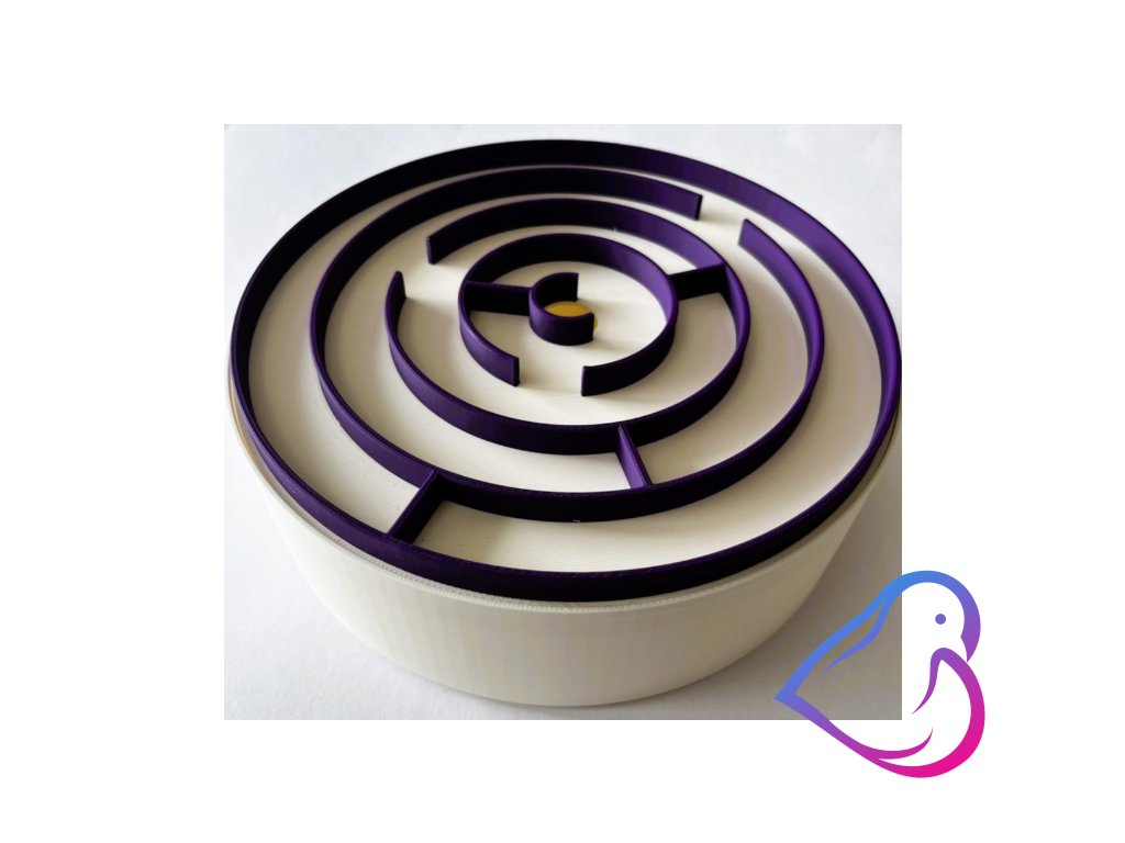 Zvládneš dostat kuličku až do cíle? To zjistíš jedině tehdy, když se pustíš do hry s touto vkládací deskou s motivem bludiště. Kulička musí projet spletitými cestami a překážkami, aby nakonec doputovala do dírky o průměru 2 cm uprostřed.