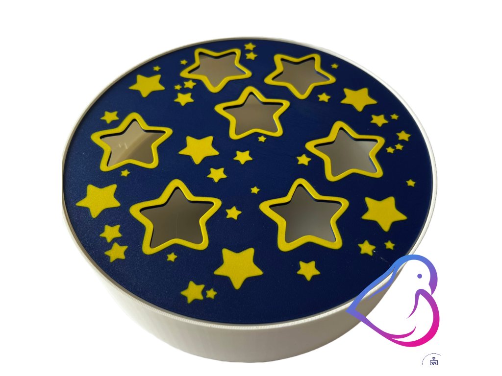 Vkládací deska do smyslotuby nebo balančního kamene s motivem noční oblohy nabízí nejen kouzlo hvězdného světa, ale i příležitost pro děti (a klidně i dospělé) procvičit jemnou motoriku, postřeh a trpělivost. Hvězdičky hledají své správné místo – a jen ty jim můžeš pomoct znovu zazářit!